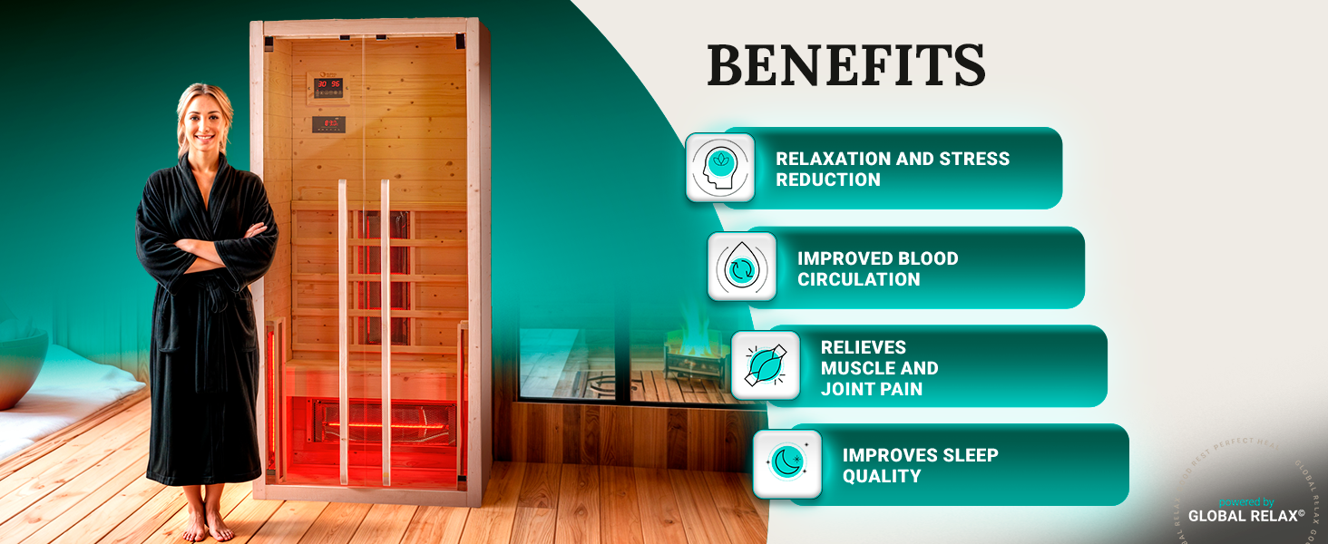• Stress Reduction & Muscle Relaxation: The infrared heat aids in alleviating stress and relaxing muscles, promoting overall well-being.